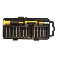 The Micro Mini II Screwdriver Set features a combination of the smallest popular bits used in today's electronics. The soft grip TPR handle has a non-mag, 4 mm, bit holder that adjusts from 5" to 8".